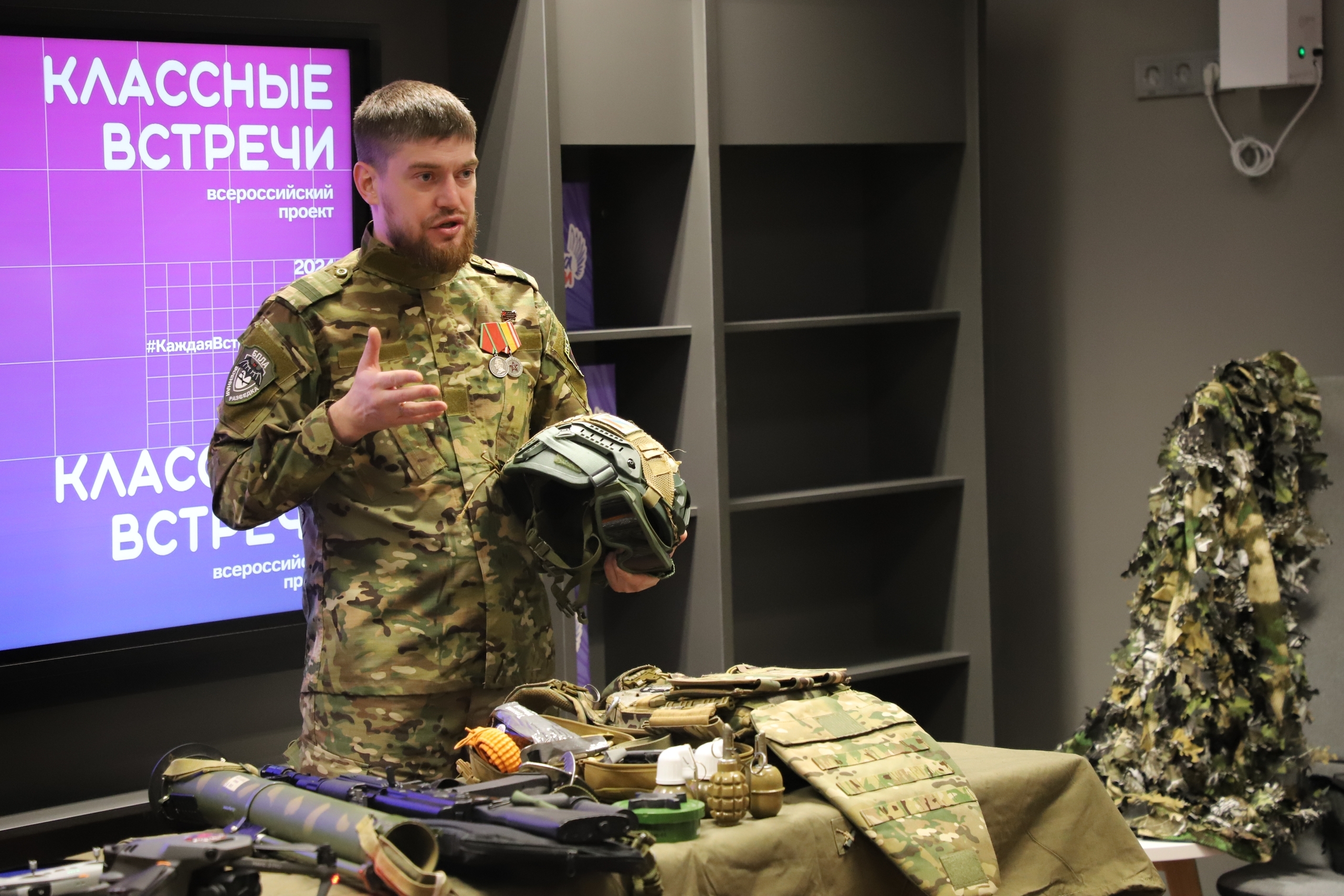 В нашей школе состоялась важная и волнительная встреча — к нам в гости пришел Илья Родин, ветеран боевых действий, награждённый медалью участника СВО и медалью Суворова. На мероприятии присутствовали воспитанники кадетского класса и юнармейцы.